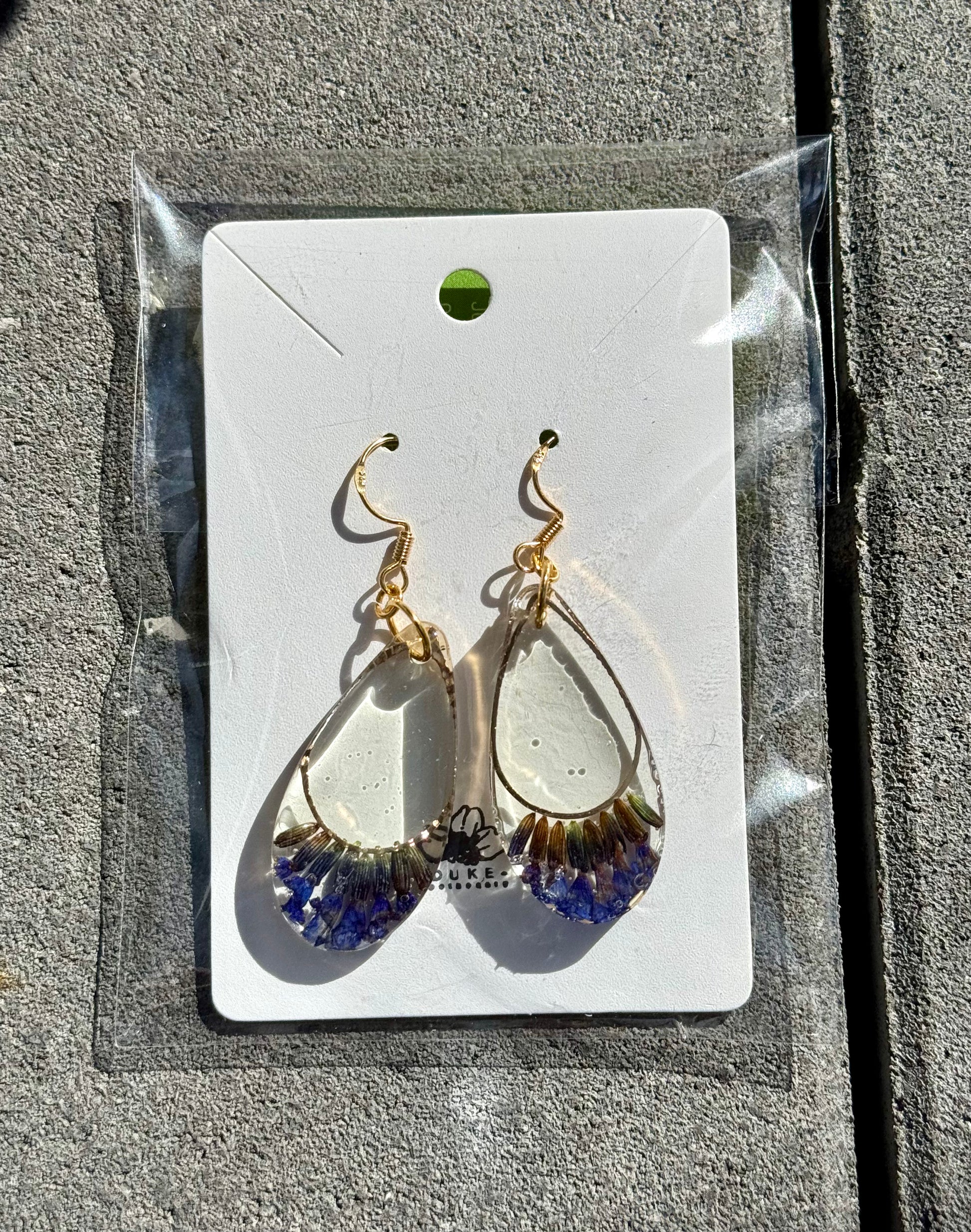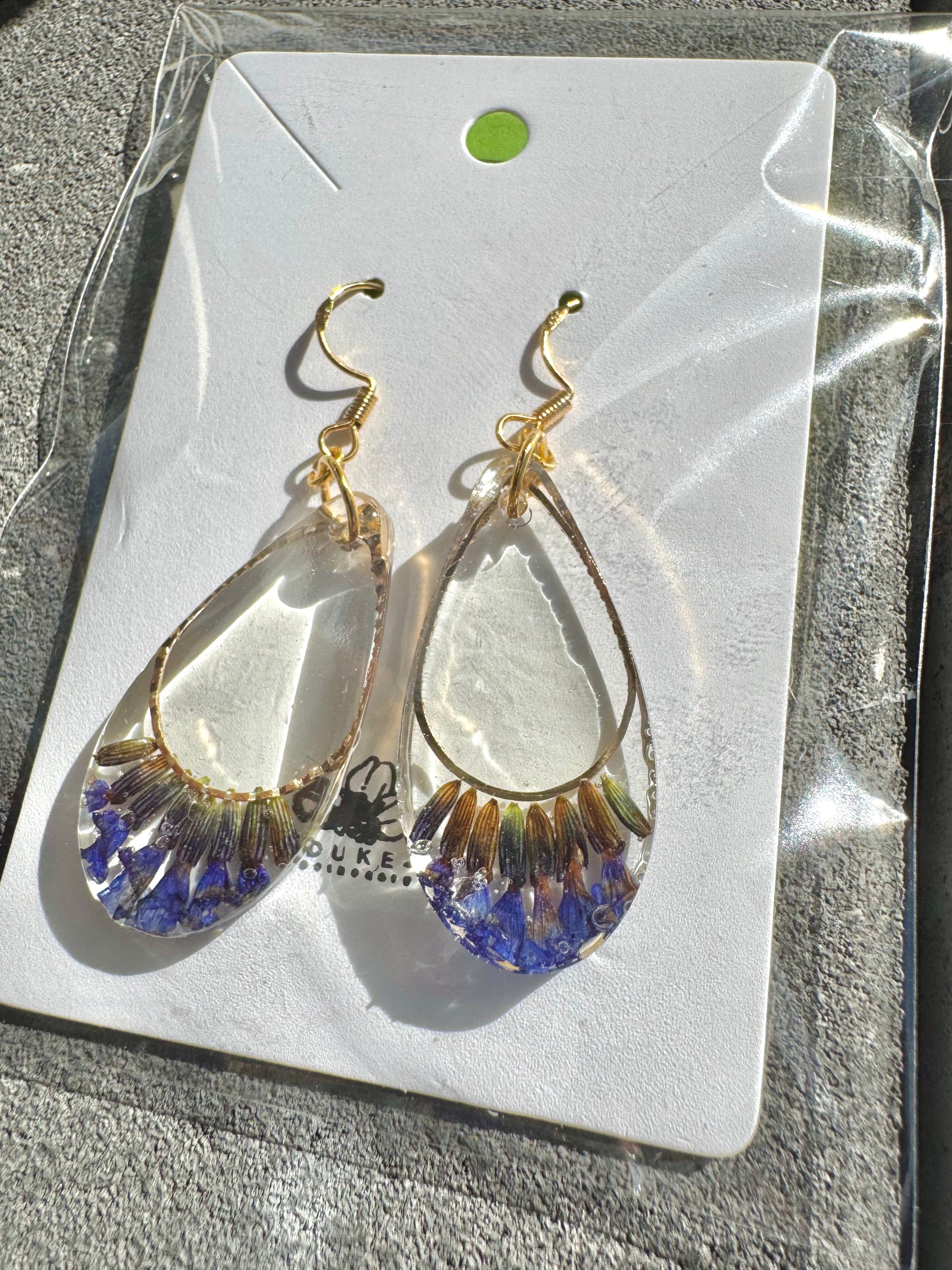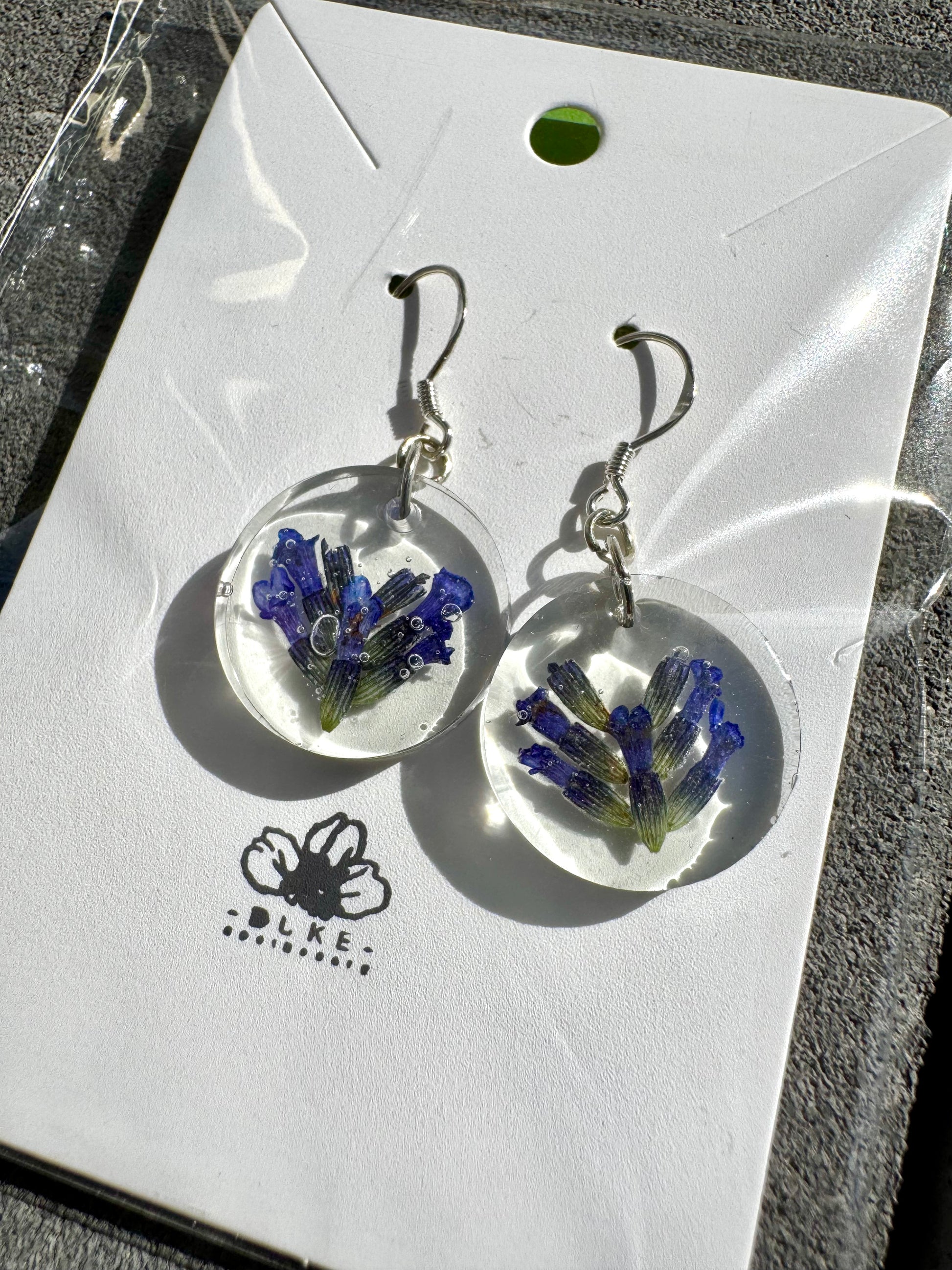 Elegant, lightweight, and deeply rooted in nature—each pair of these handcrafted resin earrings features locally grown San Juan Island lavender, preserved in crystal-clear resin to showcase the plant’s natural beauty and calming essence.